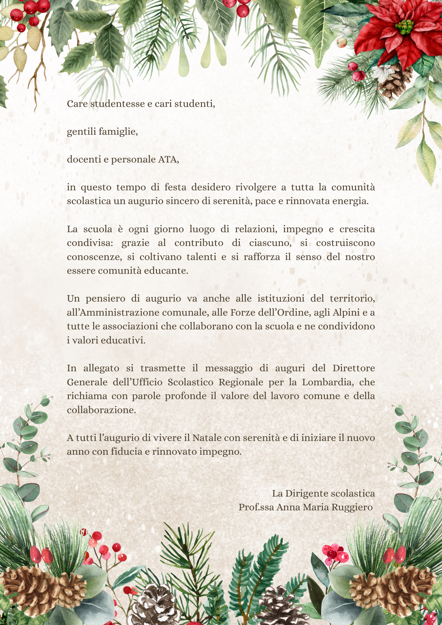 In allegato si trasmette il messaggio di auguri del Direttore Generale dell’Ufficio Scolastico Regionale per la Lombardia, che richiama con parole profonde il valore del lavoro comune e della collaborazione.